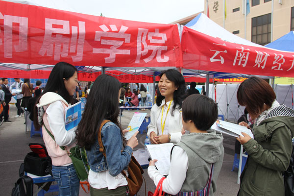 为了扩大学校在云南的影响,咨询会期间我校老师与云南海天考研总部的工作人员进行了交谈,并赠送学校的宣传资料。海天考研沈经理表示,云南地区很多学生想到北京继续深造,北京印刷学院作为一所具有行业背景的特色型大学,在印刷包装、出版传播和设计艺术方面具有学科优势,这对云南学生具有吸引力。他们将在各种考研辅导班上宣传北京印刷学院,帮助扩大学校的影响力。现场咨询会结束后,我校老师赴昆明呈贡大学城进行深入宣传,给云南大学、昆明理工大学、云南民族大学等十余所高校的学生带去了宣传资料,并联系了当地教师帮助介绍北京印刷学院,力求从多渠道、多层次进行深入的招生宣传工作。