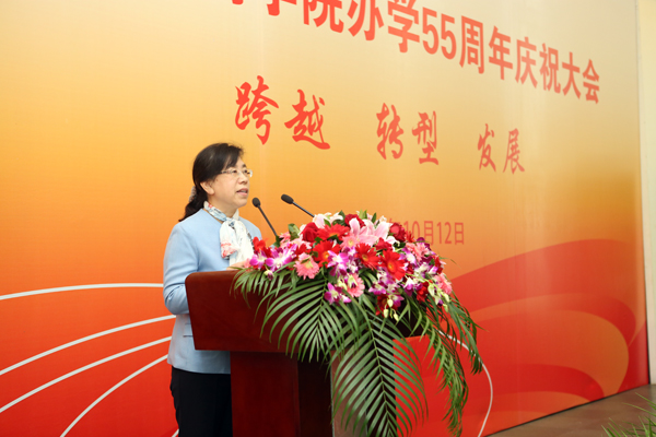 市委教育工委委员刘勇同志讲话。他提到,办学55年来,学校始终坚持正确的办学方向;始终坚持内涵发展和特色发展,注重规模、结构、质量、效益的协调统一;始终坚持“质量立校、人才强校、创新驱动、党的建设”的发展战略,在人才培养、科学研究、社会服务、文化传承等方面取得了丰硕的成果,走出了一条特色鲜明的办学道路,为首都教育事业的发展做出了积极的贡献。