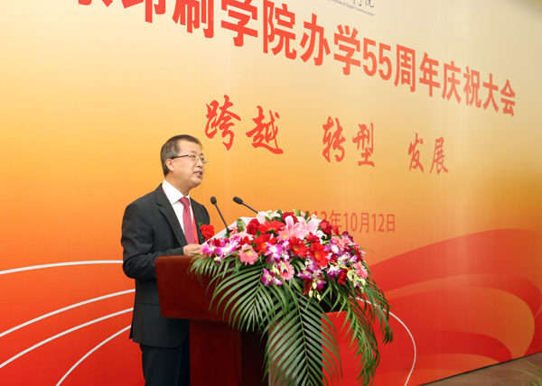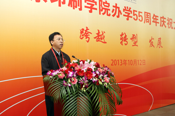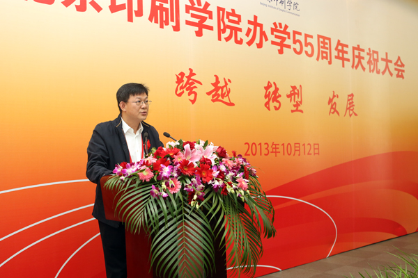 国家新闻出版广电总局人事司李宏葵副司长讲话。他指出,作为我国新闻出版领域人才培养和科学研究的重要基地,办学55年来,北京印刷学院为国家培养了大批优秀人才,为我国新闻出版业快速发展做出了特殊贡献。他希望北京印刷学院在认真总结55年办学成绩和经验的基础上,牢牢把握各方面有利机遇,充分调动各方面资源优势,进一步加大数字出版、数字印刷、数字媒体等领域专业人才的培养力度,进一步加快印刷电子、绿色印刷、数字化制造等领域科技创新,进一步加强与国际著名传媒企业、高校和科研机构的交流与合作,力争为建设新闻出版强国、服务社会主义文化大发展大繁荣做出新的更大贡献。国家新闻出版广电总局将按照总署与北京市政府签署的共建协议,一如既往地关心、支持北京印刷学院的建设和发展。