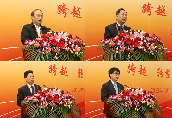 江苏省新闻出版局局长党组书记、局长周琪(左上),北京建筑大学朱光校长(右上),校友代表景素奇(左下),学生代表刘子欣(右下)分别致辞