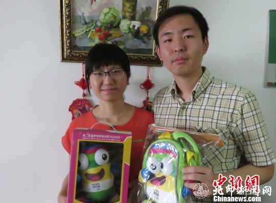 今年27岁的北京男孩崔欣晔,是南京青奥会吉祥物砳砳的设计者,自幼喜欢画画。图为崔欣晔和他的夫人。 曾鼐 摄