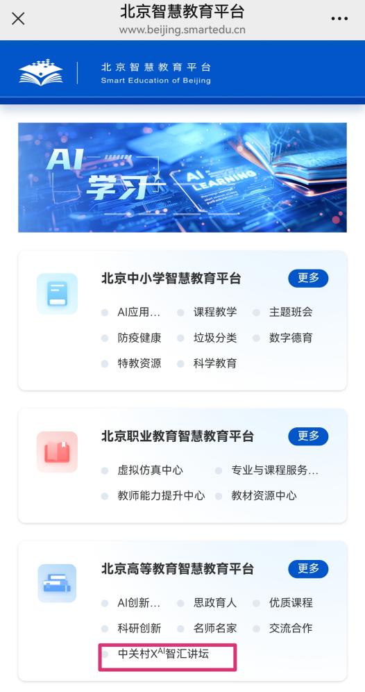 参与方式:登录北京智慧教育平台(https://www.beijing.smartedu.cn),点击下方“中关村XAI智汇讲坛”即可观看直播。