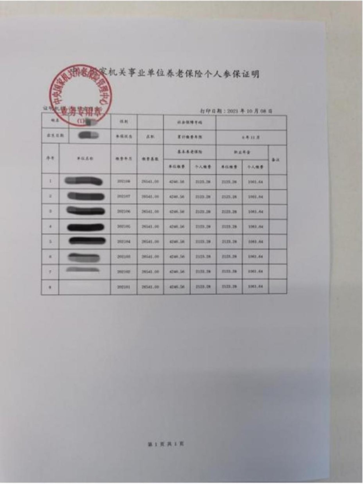 9.中央国家机关养老保险证明样例: